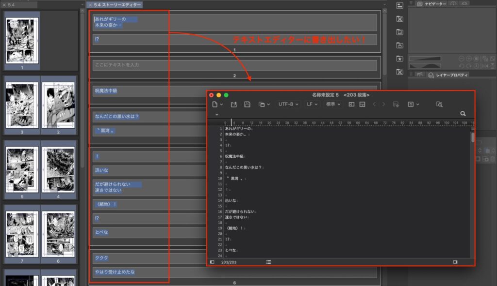 マンガのセリフをテキストエディターに書き出したい!