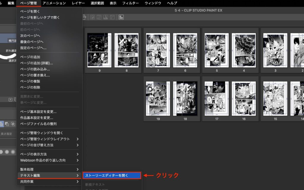 クリスタEXには、制作しているマンガ全ページのセリフを一括管理できるストーリーエディターという機能があります。